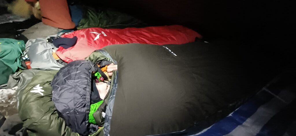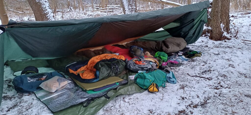 - am liebsten einen guten Winterschlafsack oder mindestens drei normale Schlafsäcke (das Hineinlegen ausprobieren)